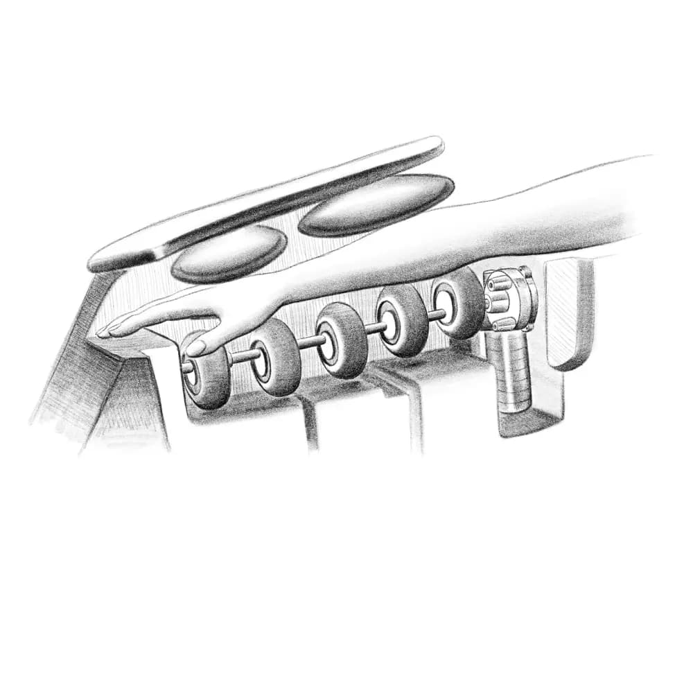 Le braccia vengono massaggiate da una moltitudine di cuscini d'aria. In corrispondenza, il sistema di rulli WAVE ARRAYS esegue movimenti circolari e oscillanti sulle braccia. CIRRUS è il maestro nell'arte del massaggio.