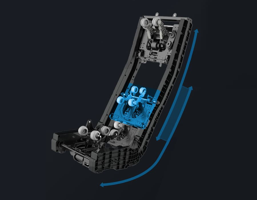 I rulli massaggianti eseguono un massaggio ritmico sui punti del meridiano e si spostano verso il basso, sulla schiena, per rilassarlo.